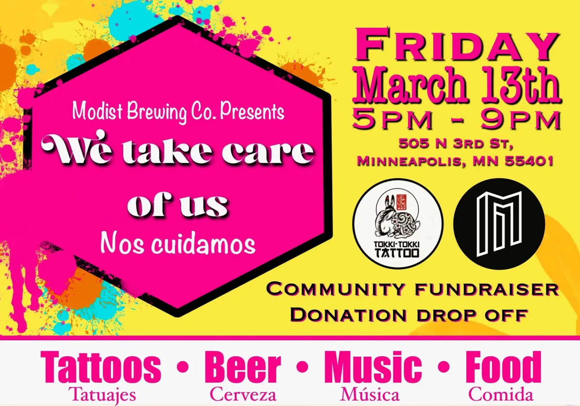 We Take Care of Us is a community fundraiser and a donation drop-off site hosted by Modist and Tokki Tokki Tattoo in Minneapolis to support families impacted by immigration enforcement actions....