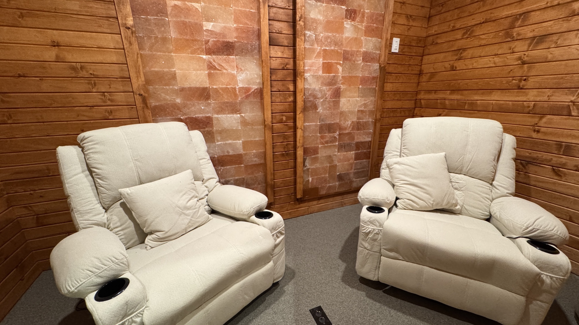 The Himalayan salt on the wall helps clients relax before or after massage treatments.