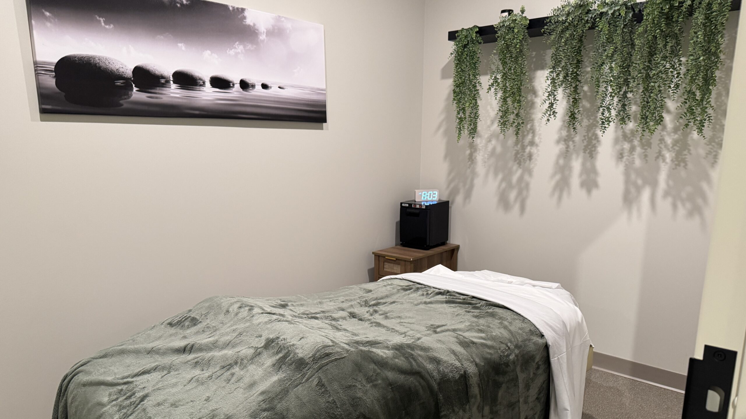 Alpha Massage and Wellness reserves a therapy room for walk-in clients.