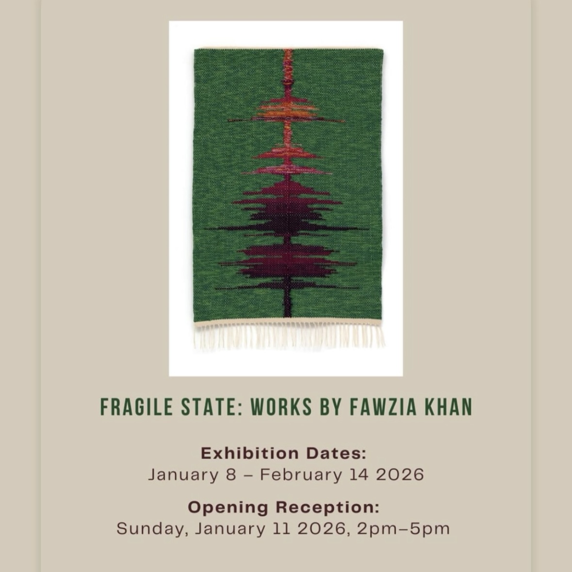 The Fragile State exhibit at Form+Content Gallery presents work by Fawzia Khan. This body of work combines weaving, embroidery and text to illuminate the current fragile state of our country... |