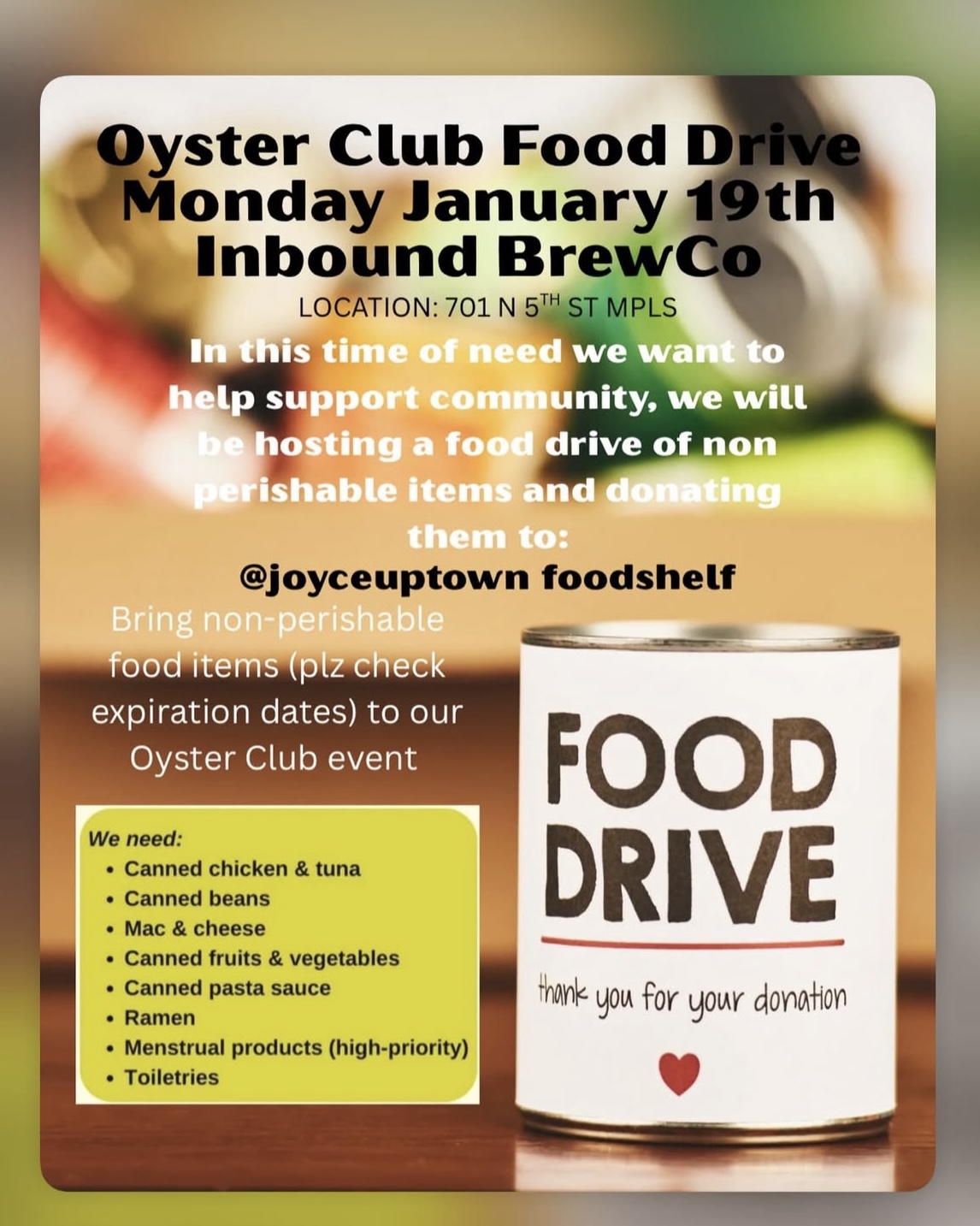 Join Inbound BrewCo for Oyster Club, a monthly gathering celebrating fresh oysters with rotating, chef-driven flavors from local chef Jack from The Farmacy. This month, to help those in need... |